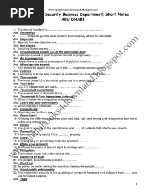 Security personnel, security guard duties, duty hand over/takeover procedure, occurrence books and pocket note books.